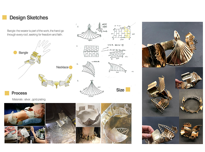林同学从最基础的手绘开始,林同学非常的刻苦和认真,因为老家不在北京,加上挂念孩子,每周末都要从北京坐高铁回老家,这样周而往返了半年多的时间。因为心中有梦想,所以排除万难,勇往直前。从手绘课到软件课,到专业创作课,工艺制作课,林同学从未缺勤,非常努力和认真,也展示出来了极大的热情和天赋。对首饰设计的追求和不辞辛苦使得林同学逐渐的完成了3个系列的设计以及一个装置设计。主题的选择也都是林同学非常有生活和经历的,包括佛教主题、紫禁城主题等等。为了能够给自己一个美好回忆和交代,林同学自己充当模特把自己设计并制作的首饰成品拍摄成了大片做成了20页的作品集。最终申请到了美国旧金山艺术大学首饰设计研究生,罗德岛艺术设计学院在林同学托福不够的情况下也给了“待定”,这也是对林同学的极大认可和支持。